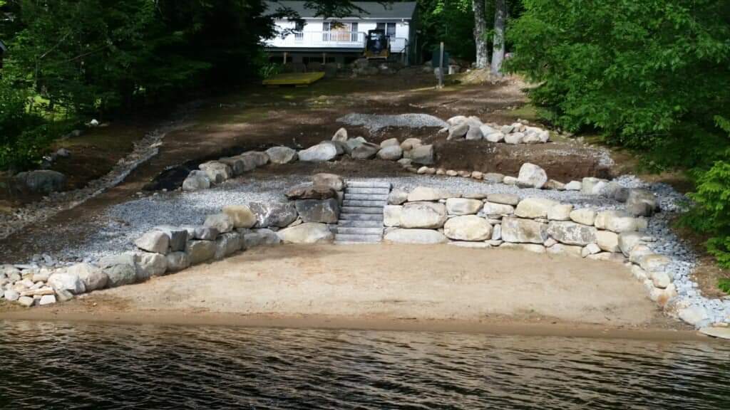 The proximity to the lake at this property was no challenge for our team. We were able to build a beach wall and water diverters to work with the natural landscape, ensuring that this homeowner will be able to enjoy their lakeside property for years to come without worry.