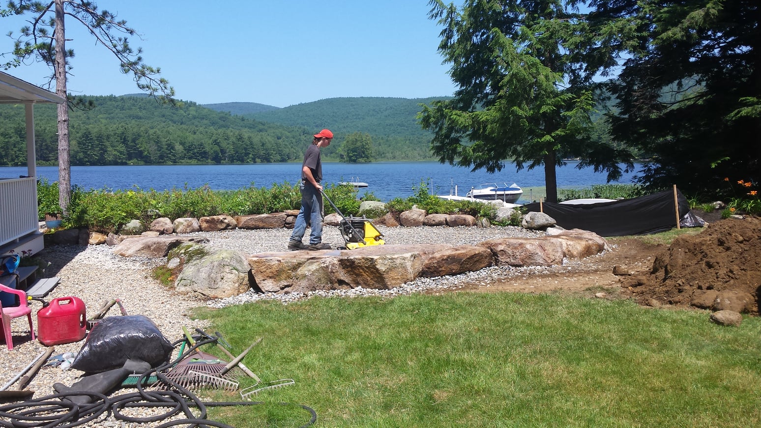 This lakeside home had the perfect spot for a patio to enjoy the serene setting. Our team was able to excavate and level out an area of the lot for the homeowners to build their dream patio.